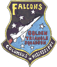 "The selected new patch design for the Golden Triangle Composite Squadron, as seen to the left, was conceived by Robert Williams, known as 'Uncle Bunky,' who was the grandfather of Cadet Jon Comer, a squadron member. This original artwork was adopted with the name change from 'Falcons,' as denoted on the original artwork, to 'Talons' - a name selected due to its fierce connotations, and the members of the Golden Triangle Composite Squadron who serve their country with the same tenacity. The design went through several more slight iterations prior to being sent to the patchmaker. The patch was approved by the Mississippi Wing Commander, Colonel Don Angel, on the 17th of November 1999."