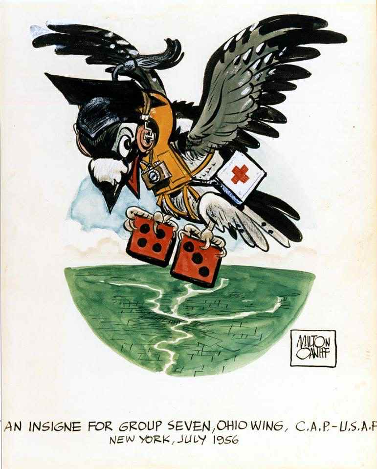 Designed by Milton Caniff, July 9, 1956 [original artwork]. The description and significance above is taken directly from Caniff's release for the insignia. The modern patch (Version 3) does not feature all of the listed elements.